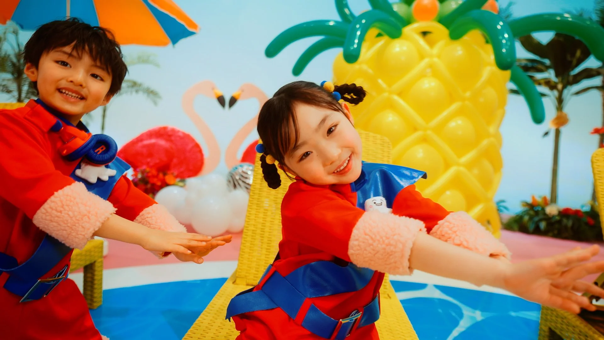 テレビ東京のあかちゃん向け番組「シナぷしゅ」のオープニングエンディングを演出しました。立ち上げ時以来、3年ぶりに再びディレクションしました。こどもも、親も、リラックスした気持ちで番組をみて欲しいという思いから、トロピカルでファンタジーでリゾートな世界観で表現しました。こどもたちのおかげで、とっても可愛く撮影することができました。